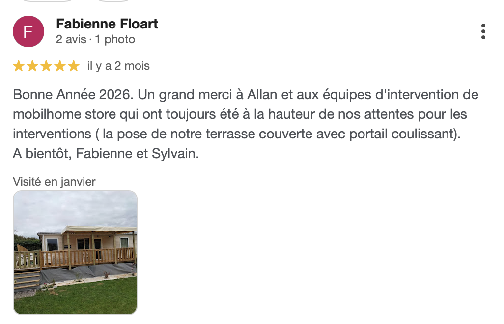 Nous prenons tout en charge : transport, installation, raccordements en eau, électricité, assainissement, ainsi que la pose de votre terrasse, couverte ou non.