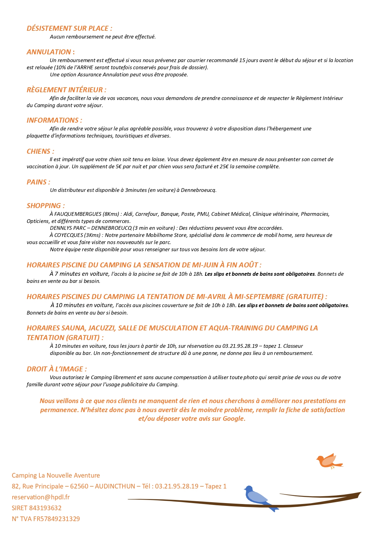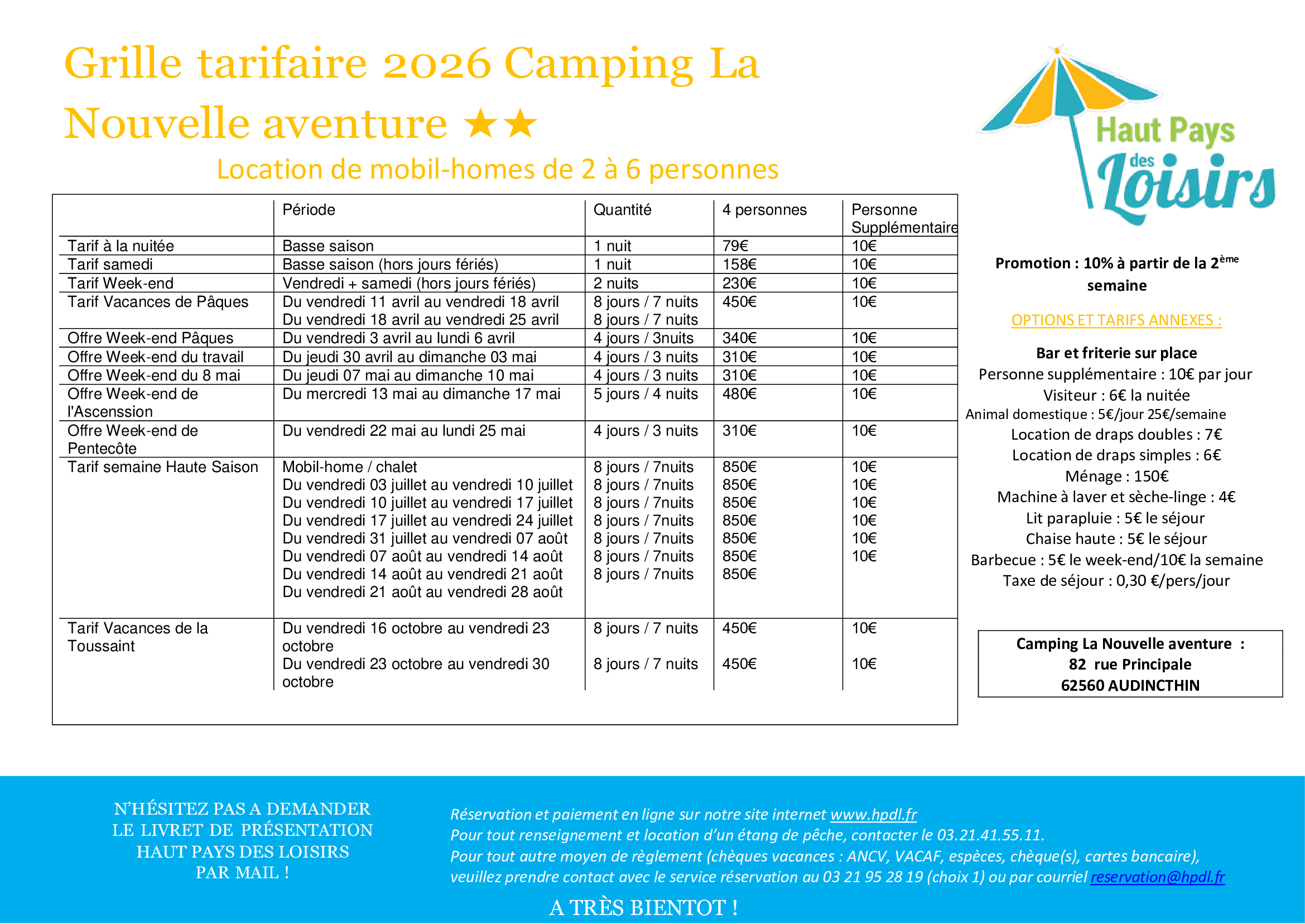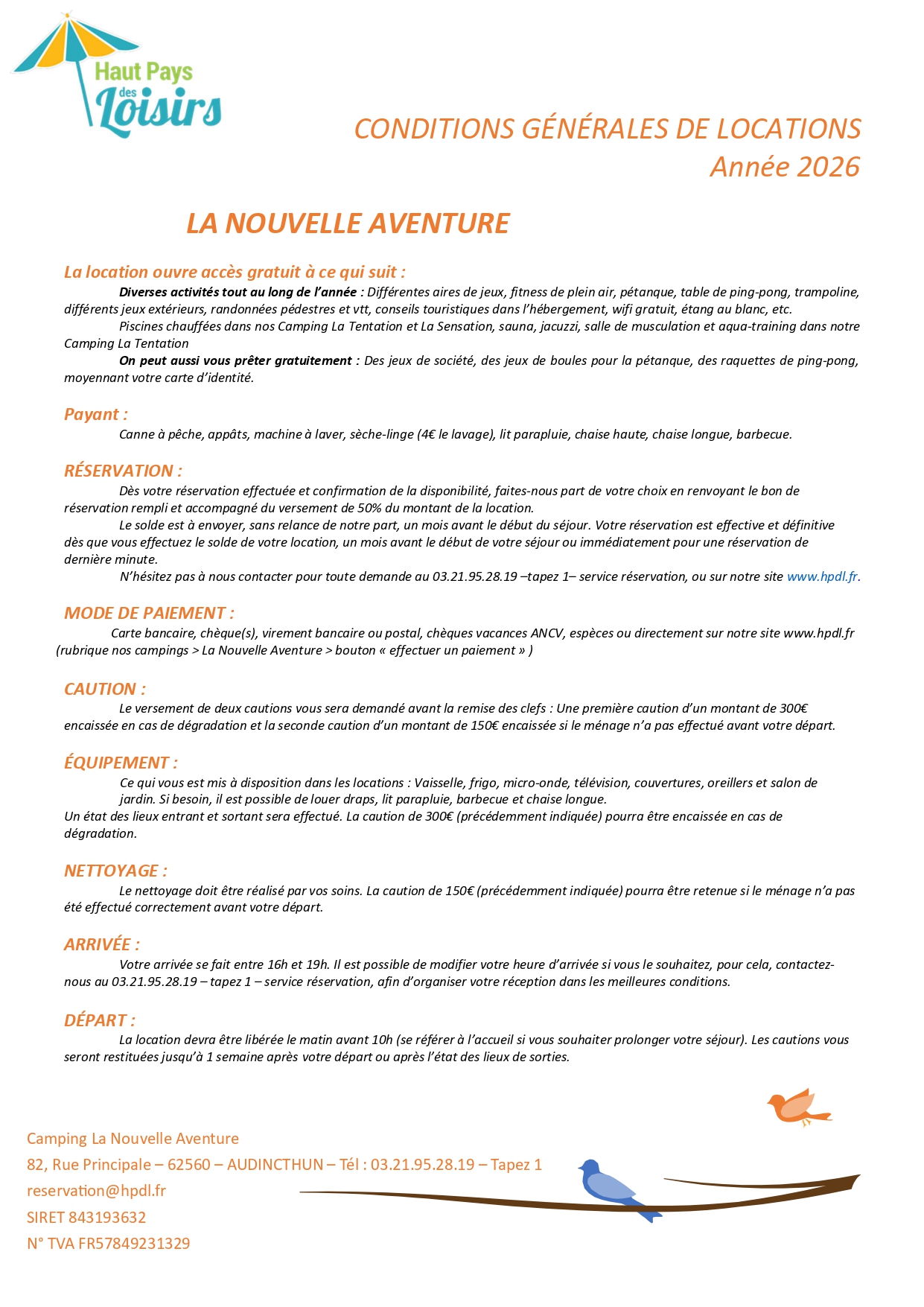 Tarifs et CG 2025 – Nouvelle Aventure Emplacement