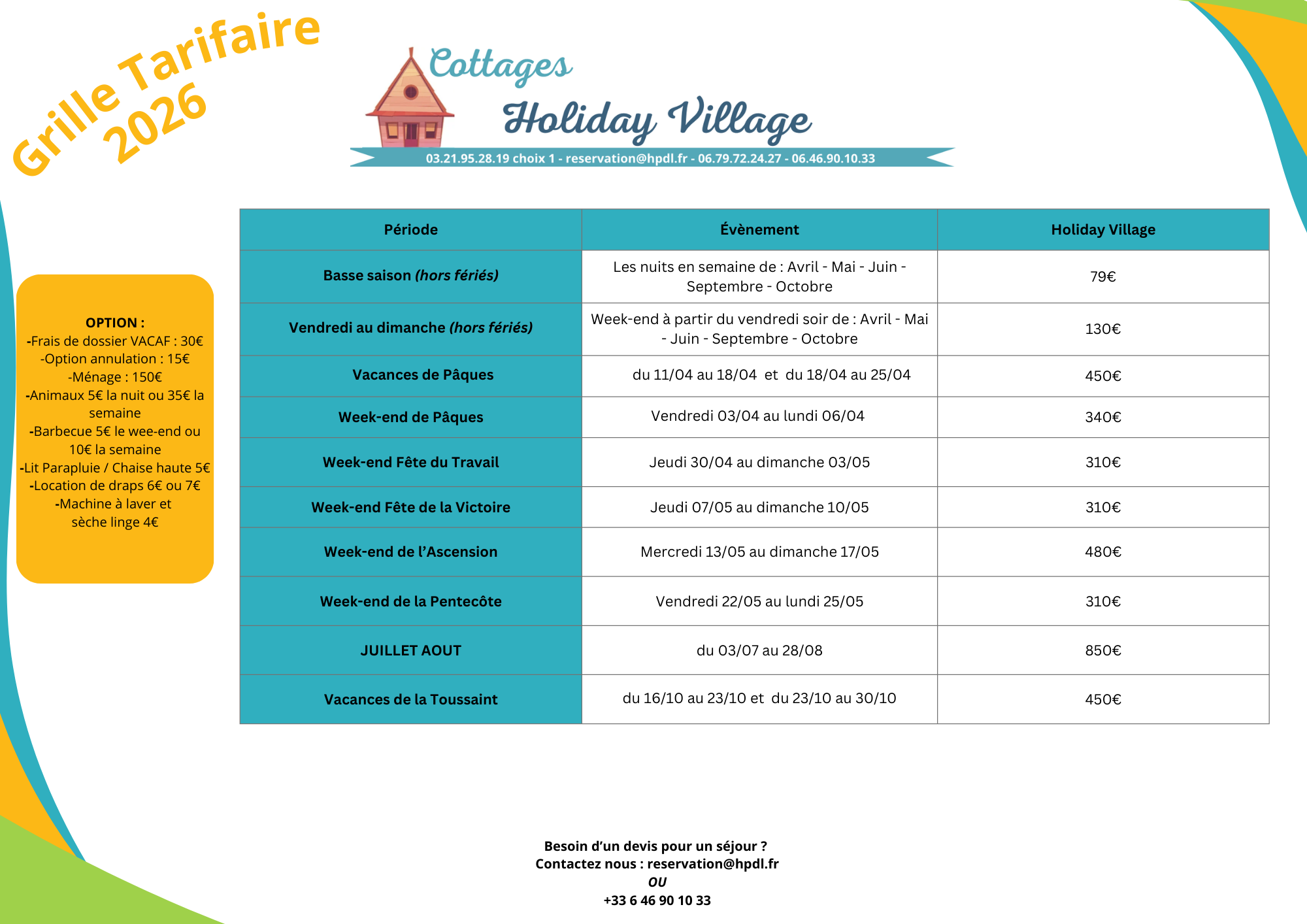 Tarifs 2026 Holiday Village